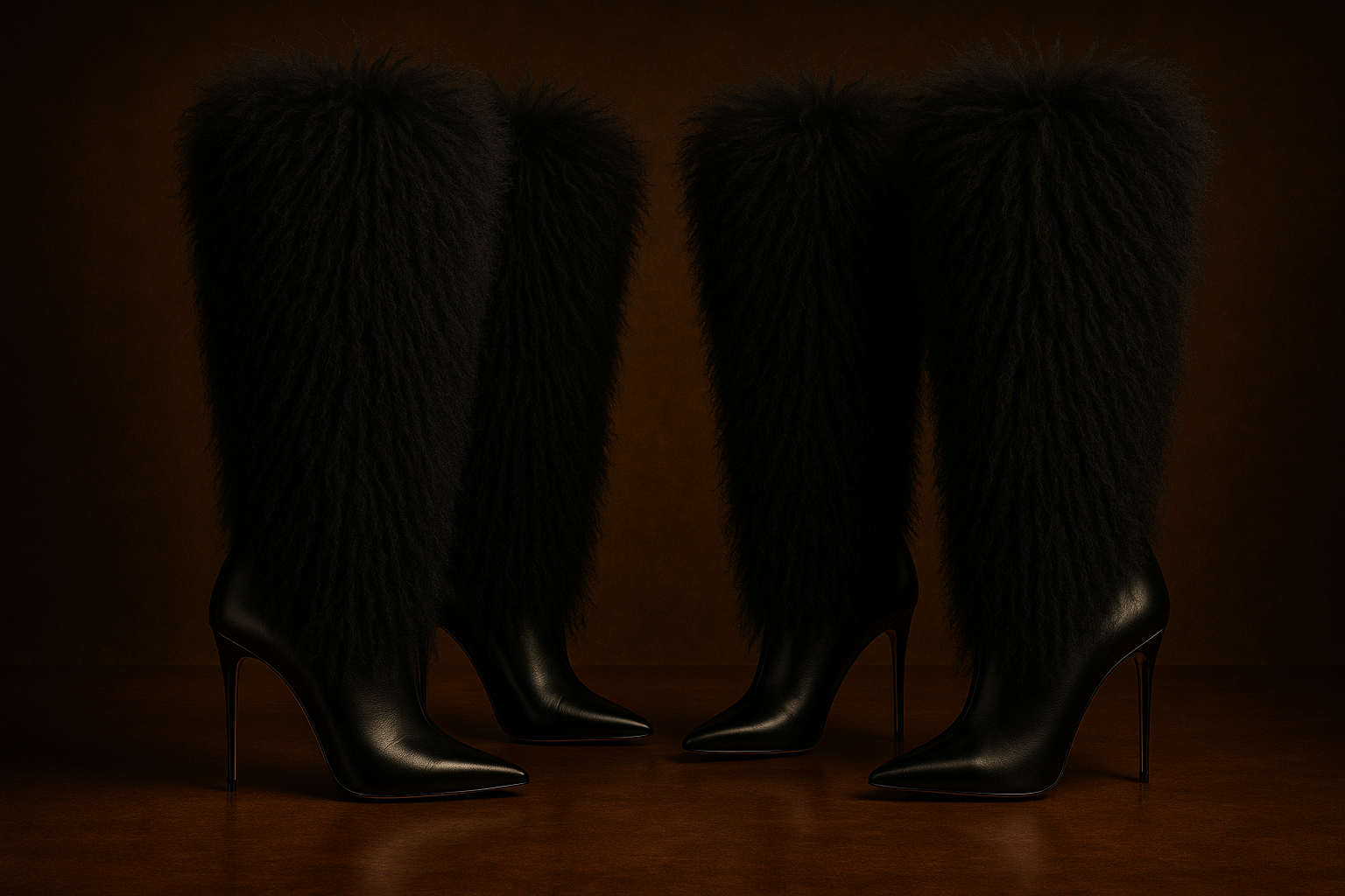 Hottie Color-Block Faux Fur Stiletto Pointed Toe Mid-Calf Boots