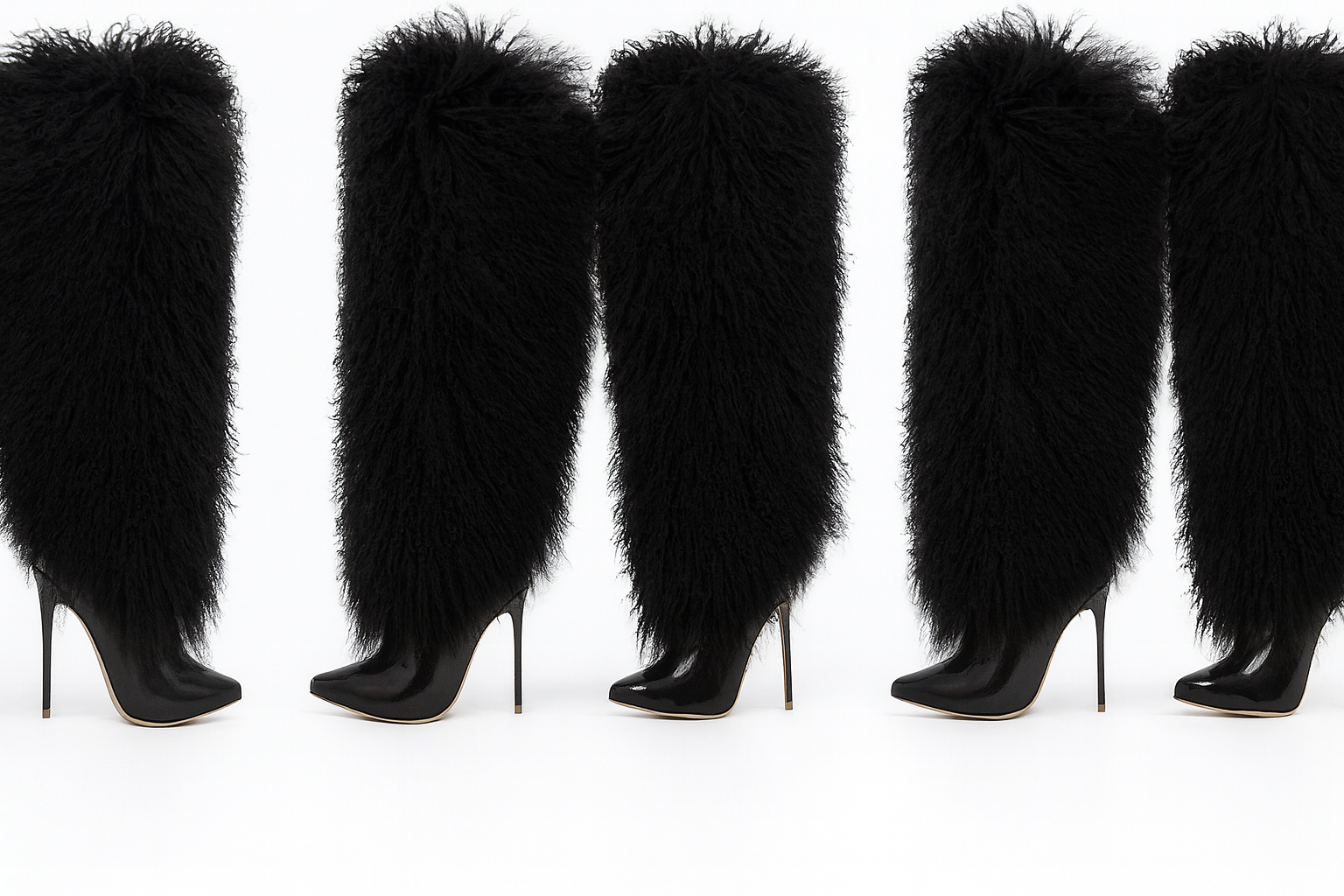 Hottie Color-Block Faux Fur Stiletto Pointed Toe Mid-Calf Boots